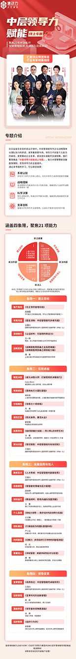 【中層領(lǐng)導(dǎo)力賦能線上專題】重磅上線,基于LEAD NOW! 領(lǐng)導(dǎo)力模型設(shè)計,搭配業(yè)界權(quán)威專家團隊線上體系精品視頻課程,賦能企業(yè)系統(tǒng)培養(yǎng)中層管理團隊!聚焦21項關(guān)鍵能力,突破管理瓶頸,引領(lǐng)團隊邁向卓越!